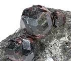 Stikine River, Wrangell Island, Wrangell-Petersburg Borough, Alaska, USA - This rock hosts several bright deep red well terminated almandines from the Alaska area ! The crystals are up to 1.5 cm in diameter ! Neat and showy rock of 5x3x3 cm in size