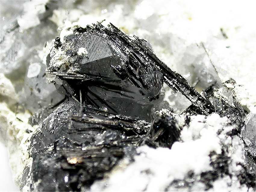 Campiglia Marittima, Livorno Province, Tuscany, Italy - Small black terminations of stand around a small amount of quartz matrix with a few isolated crystals of quartz. The quartz crystals are…
