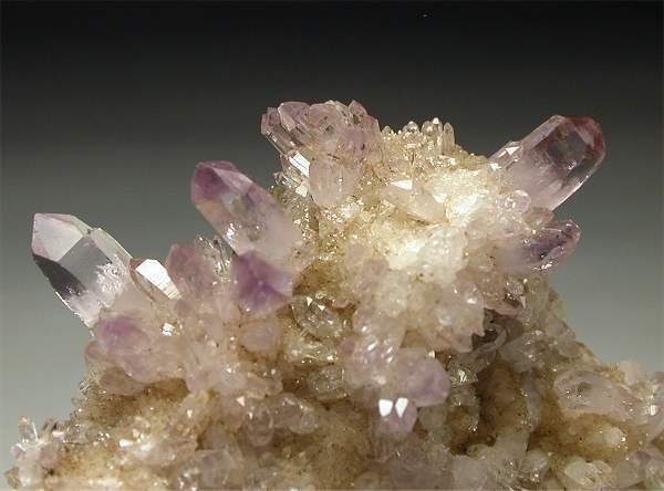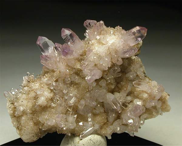 Veracruz, Pedra Parada, Mexico - The whole rock is covered by amethystine quartz crystals ! The main crystals are with a nice amethyst color close to the top and their size is up to 1 cm. Showy rock of 5.5x4x2 cm in size