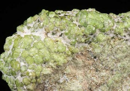 Ciappanico, Malenco Valley, Sondrio, Italy - Nice andrqadite coating with hundreds aof crystals with bright green color and up to 0.3 cm. Very nice a rapresentative of the locality. Overall size is 5x4x2 cm. Ex R. Vochten collection.