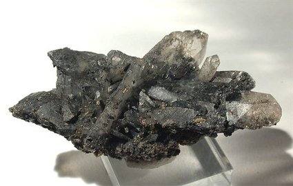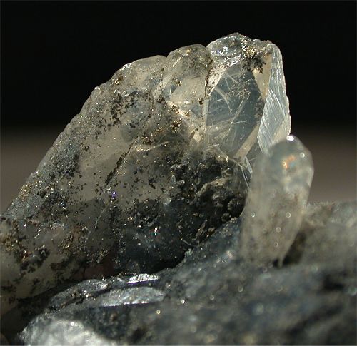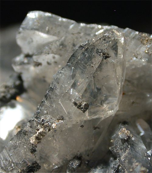 Monteponi mine, Carbonia-Iglesias, Sardinia, Italy - A nice cluster of anglesite crystals form this specimen ! The anglesites are up to 3.8 cm in length and have great brigthness ! There are at least half a dozen crystals in the range of 3 com in size ! on the back there are a lot of 2-4 mm anglesites and several sulfides crystals. Overall size is 7.5x4x2.5 cm