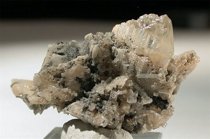 Monteponi mine, Carbonia-Iglesias, Sardinia, Italy - The whole specimen is composed by a cluster of anglesite crystals ! There are 2 large and well exposed crystals up to 1.8 and 2.2 cm in length and many aother all around. All of them are terminated though showing some imperfection due to their genesys not to damages ! a super specimen ! overall size is 6x3.4x3.2 cm