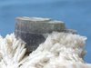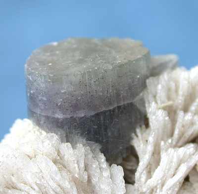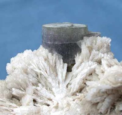 PAKISTAN - Sharp, bright violet/green apatite crystal nested among albite. The apatite is up to 1x2 cm. Perfectly terminated ! Overall size is 7x3.5x5 cm.
