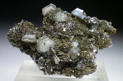 Panasqueira Mine, Beira Baixa, Portugal - This mass of crystalline muscovite is host to several crystals of apatite to 1 cm across. No damage at all ! Overall size is 5.5 x 4.0 x 2.0 cm