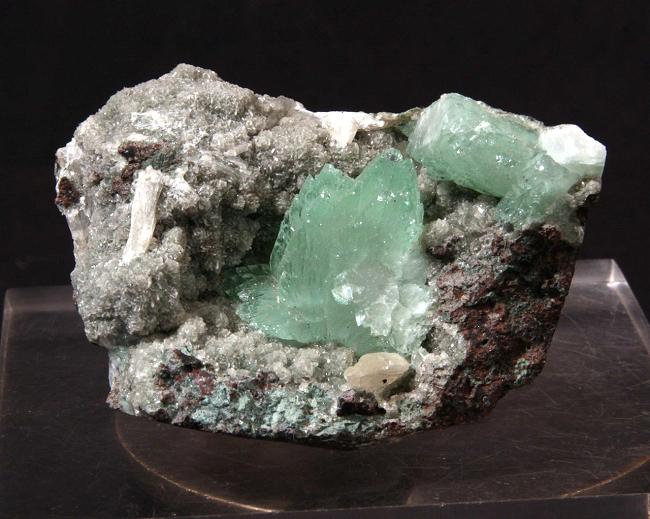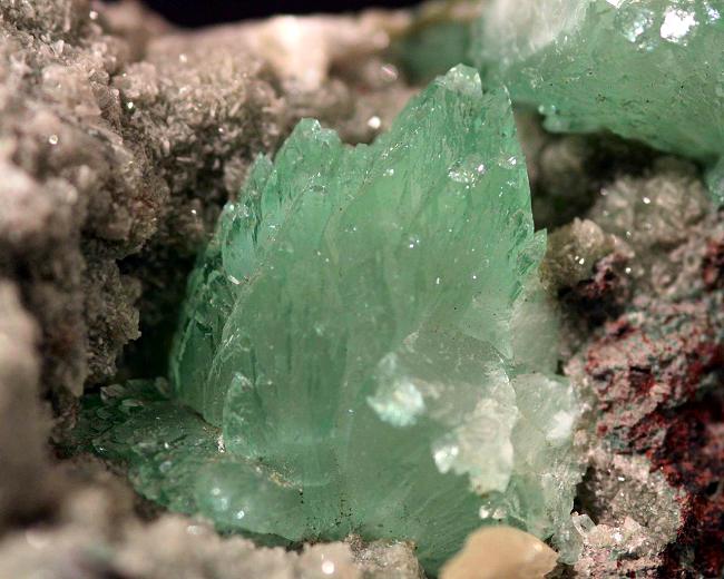 Pune, Maharashtra, India - Nice cluster of green apophyllites show inside an open cavity. The crystal have a nice bright green color and are up to 2-2.2 cm in size. Overall size is 5.5x4.5x2.5 cm