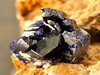 Kerrouchene, Khénifra Province, Meknès-Tafilalet Region, Morocco - A classic from Marocco. There is a nice cluster of deep blue, bright azurite crystals on this specimen ! The cluster is 1x1 cm in size and is a grouping of more than a half a dozen azurites up to 1-1.3 cm cm in size. Other crystals are close to this cluster. very nice specimen of 7x5.5x3 cm