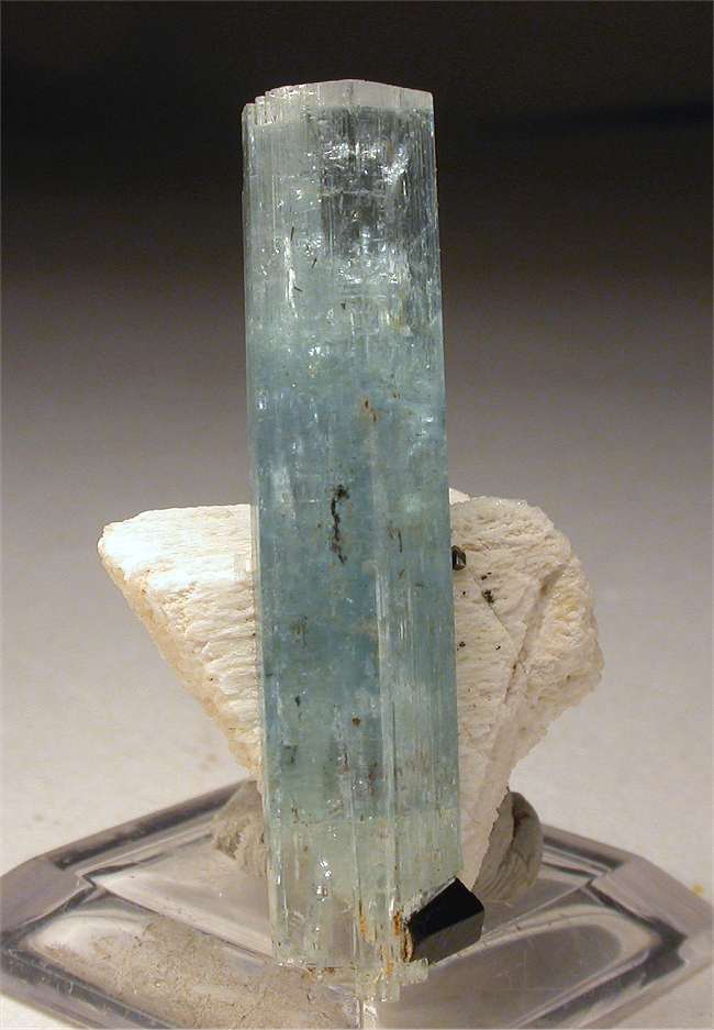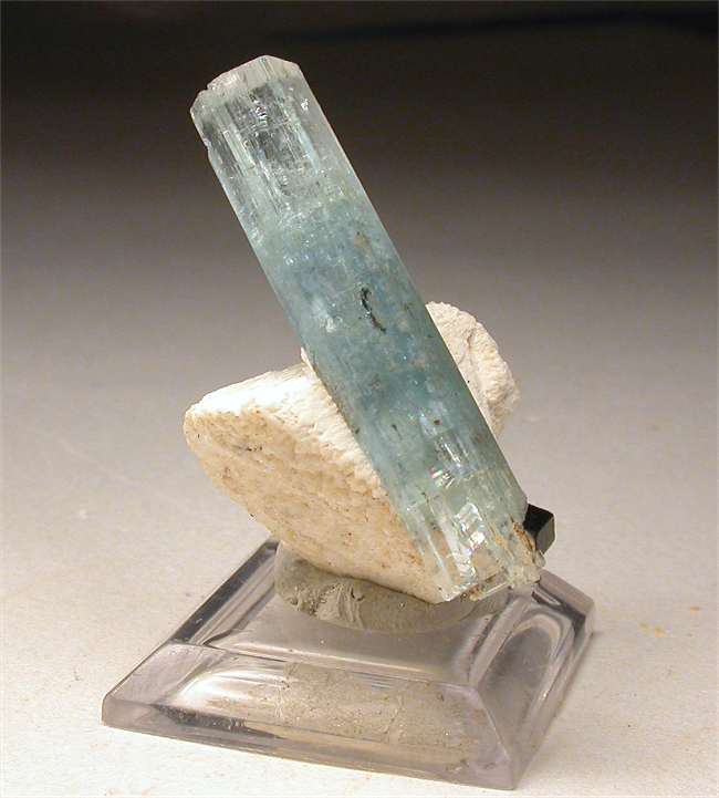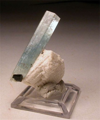 Karibib District, Erongo region, Namibia - A superb biterminated beryl var aquamarine of 4 cm in size stands on a small matrix. The color is a superb light blue and it is really attractive. The beryl is terminated on both ends ! Super specimen of 4x2.5x2.5 cm in size. Ex Clollectors Edge coll.