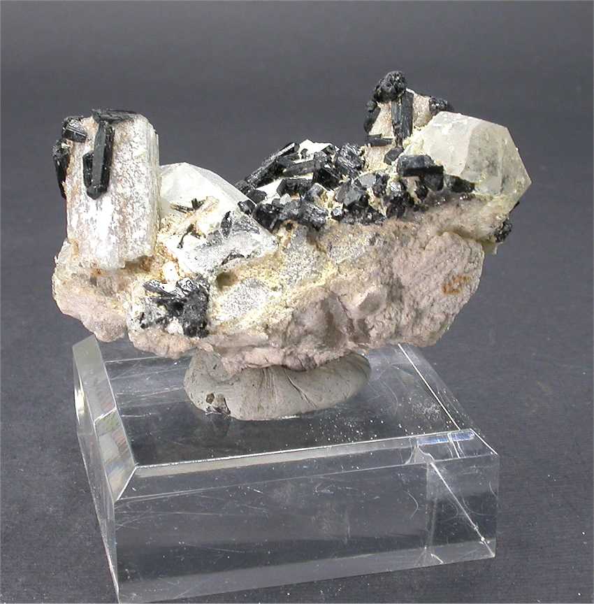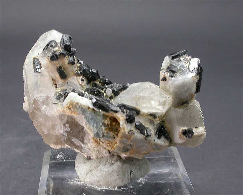 Erongo Mountains, Karibib, Erongo Region, Namibia - Nice specimen hosting beryl and schorlite crystals on quartz ! There are a couple of terminated beryls up to 2 cm in size with several schorlite on some faces ! There are also a couple of terminated quartz up to 4 cm in size. The matrix has also a partial aqua crystal, with a nice blue color in the inner part. Nice classic from Erongo ! overall size is 6.5x3.5x3 cm. eight is 60 gr.