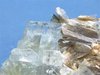PAKISTAN - Nicely exposed and terminated beryl crystal of 1.4 cm in length. It seats among the lepidolite crystals and shows a contact with the matrix on the back. Overall size is 4.5x3x5 cm.