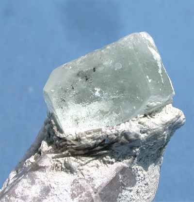 PAKISTAN - This 4x3.5x2 cm specimen consists of an almost gemmy beryl of 1.5x1x1 cm, with a nice aqua color, and a 2.5 quartz crystal. The beryl is terminated. On the back has a contact with the matrix. Nice.