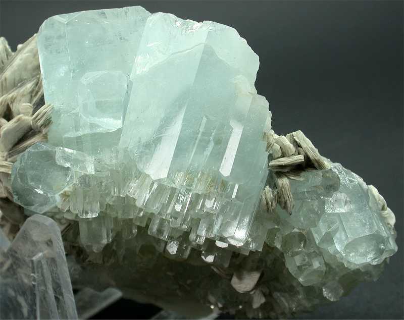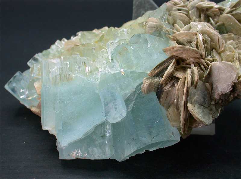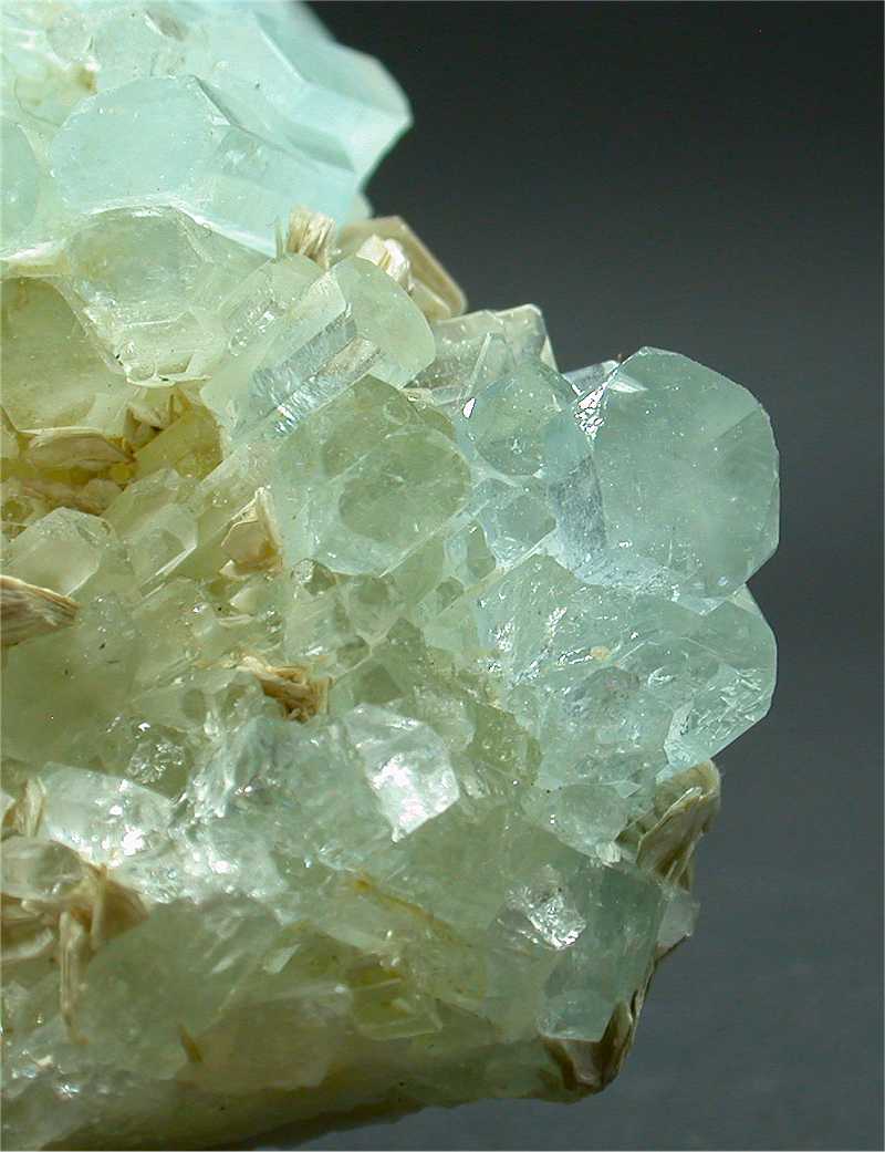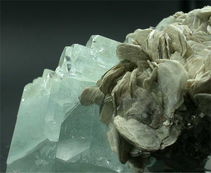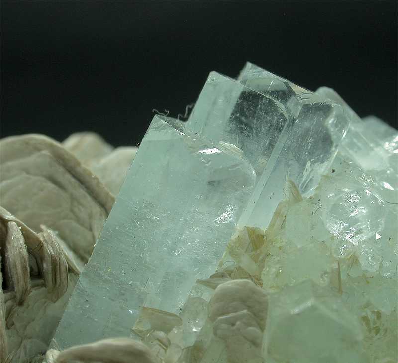 Shigar Valley, Northern Areas, Pakistan - An incredible rich specimen !! There are miriad of terminated beryl var aquamarine crystals here ! The main crystals are in the fronT of the specimen and are up to 3.3 cm in size ! I count more than two dozens of berylS ALL terminated when looking at the specimen from above !! a very nice esthetic specimen. Overall size is 12.5x9x4.5 cm. Weight is 570 gr.