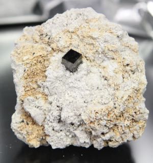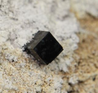 Maynard's Claim, Thomas Range, Juab County, Utah, USA - A nice sharp, lustrous clo to 1 cm black Bixbyite crystal sits on rhyolite matrix in this aesthetic Thomas Range piece. A good specimen of this rare species. Overall size is 6x5.5x2.5 cm