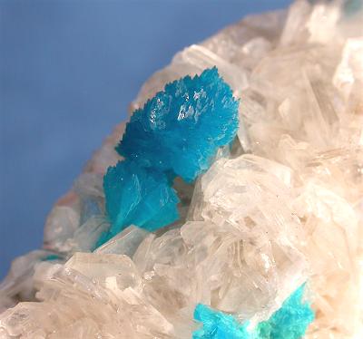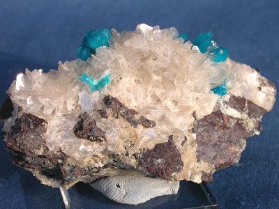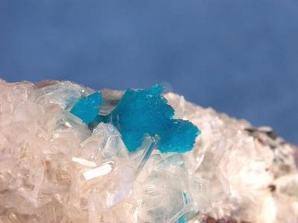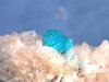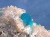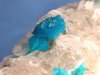 INDIA - Showy rock with several cavansite spheoids in the 0.5-0.7 cm range. The color is light blue and it has a good contrast on the stilbite crystals. 5.5x3x3 cm.