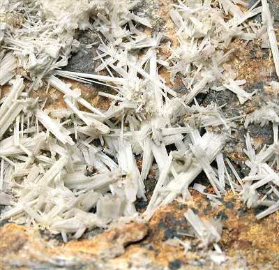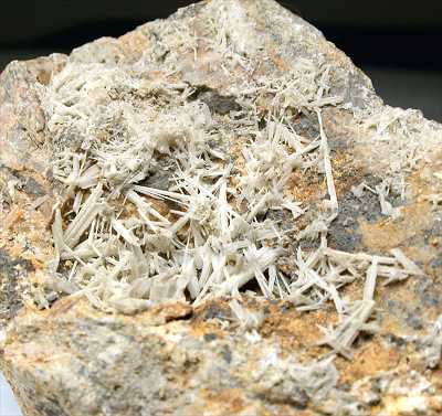Montevecchio mine, Iglesias-Carbonia province, Sardegna, Italy - This rock hosts a lot of cerussite crystals to the size of 1-1.3 cm. This material is quite scarce since this mine was closed in the early 70ies. Overall size is 8x5x4 cm