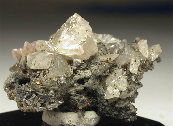 Tsumeb Mine, Tsumeb, Otjikoto Region, Namibia - On a galena matrix there are a large amount of cerussite crystals up to the size of 1-1.3 cm across. The largest crystal is uncomplete but all others are terminated. Overall size is 3.5x2.2.x2.2 cm