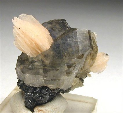Touissit Mine, Oujda, Meknès-Tafilalet Region, Morocco - Nice pink baryte crystals of 1.2 cm forming a cluster stand on a doubly terminated cerussite crystal of 2 cm in size ! Nice 2.5x2x1.2 cm specimen.