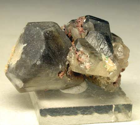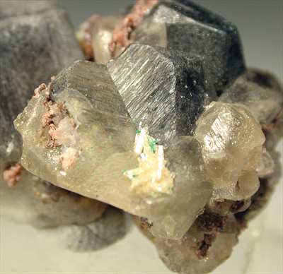 Tsumeb Mine, Tsumeb, Namibia - Showy cluster of cerussite crystals with tiny mimetite crystals. The cerussites are well shaped and up to 2 cm in size ! Real nice specimen of 3.5x2x2 cm. Ex Trinity Mineral Company specimen.