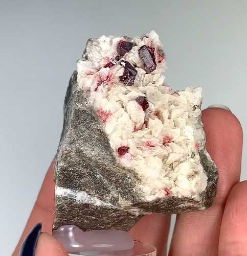 Yunchangping Mine, Wanshan, Tongren, Guizhou, China - Lustrous red crystals of cinnabar to 0.5 cm in size on a matrix of white crystallized dolomite. The prominent crystals in good condition, slight micro-chipping present. Size: 5.0 x 4.0 x 3.0 cm. Weight is 49 gr