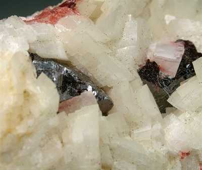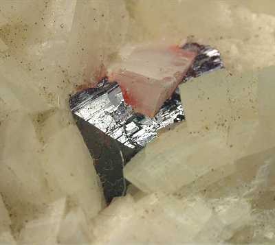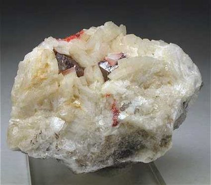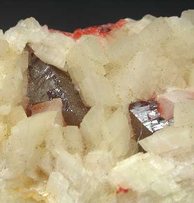 HUONGHUANG, HUNAN PROV., CHINA - Terminated deep red crystals crystals of cinnabar show up on this dolomite specimen. There 2 cinnabars up to 0.8 and 1 cm on the edge, no damage ! Overall size is 6.5x4x3 cm.