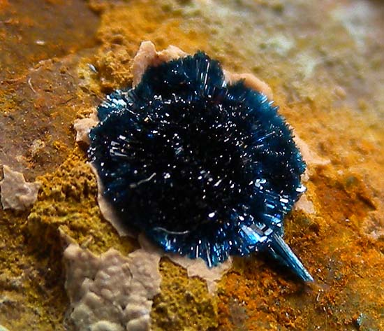 Majuba Hill Mine, Pershing Co., Nevada, USA - Bright blue acicular crystals of Clinoclase on matrix.Overall size is 2.5 x 2.3 x 1.5 cm