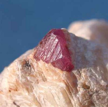 PAKISTAN - Well defined and shaped corundum crystal of 0.6 cm. The color is bright red. Overall size is 5X4X3 cm.