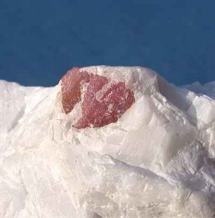 PAKISTAN - Nice though partly frozened in the matrix ! the crystal shows its shape and the bright color. The size is 0.6 cm. Overall size of the specimen is 5.5X3.5X3.5 cm.