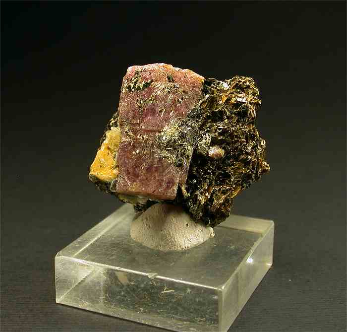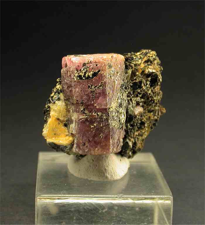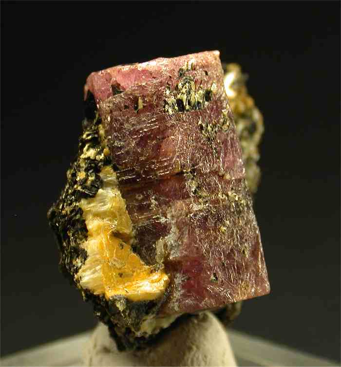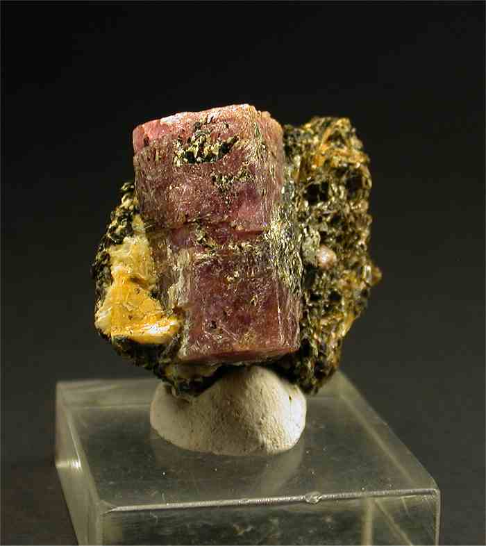 HOOSY, MADAGASCAR - A very nice biterminated corundom on scist matrix ! The crystal is 2.3 cm long and 1.6 cm wide ! Great red/violet color. Very esthetic ! Overall size is 3x2.7x1.8 cm