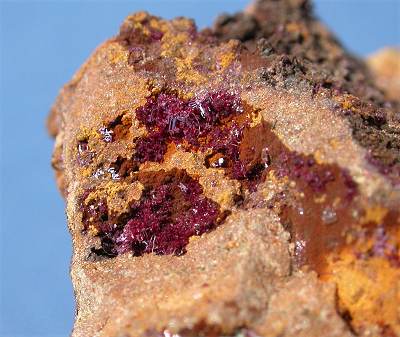 RAY MINE, AZ - A lot of cubic cuprite crystals cover this specimn. Their size is up to 0.5-1 mm and have a deep bright red color. Overall size is 3x2.5x2 cm