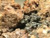 Tsumeb Mine, Otavi Highlands, Namibia - A carbonatic matrix with a lot of bright deep red millimetric crystals of cuprite spread all around. The cuprites form various clusters and are nicely located inside some open cavities. Real nice specimen of 6.5x5.5x3.5 cm. Ex M. Wrigley collection
