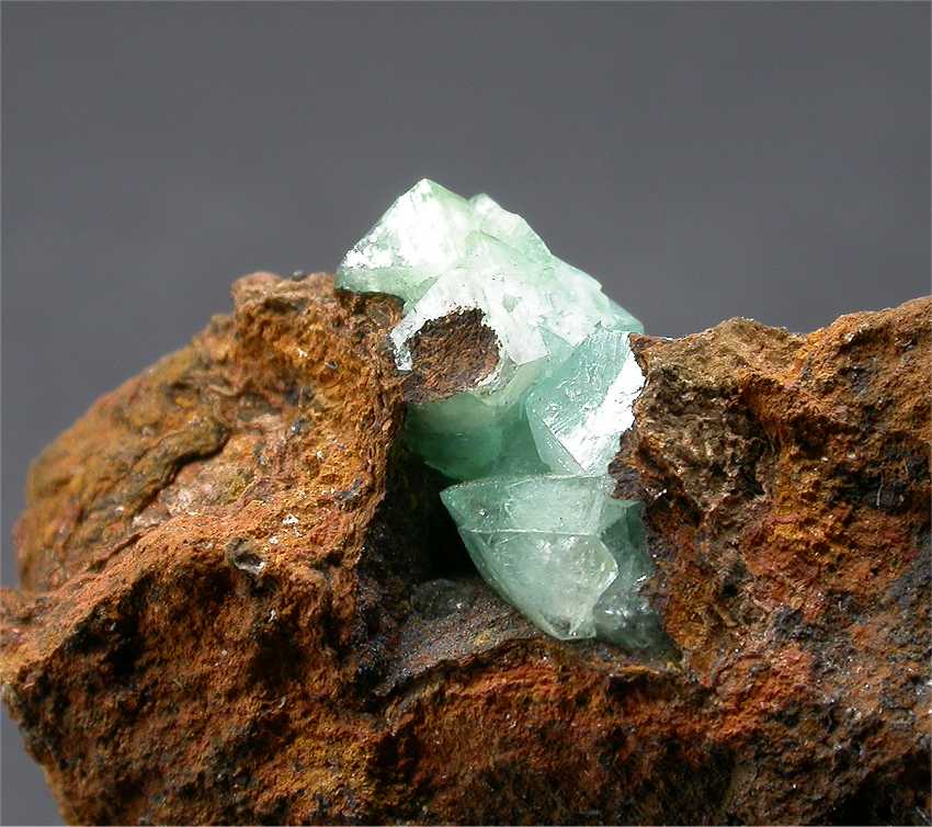 Mapimi, Durango. Mexico - There are various nice green/blue 0.7 cm xxls grouped forming a cluster on matrix. Very nice color ! Showy specimen of 5x2.5x1.5 cm