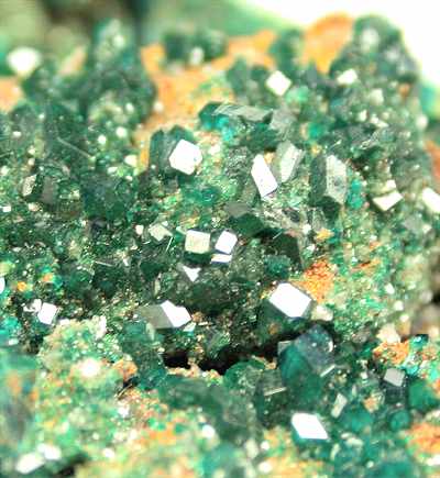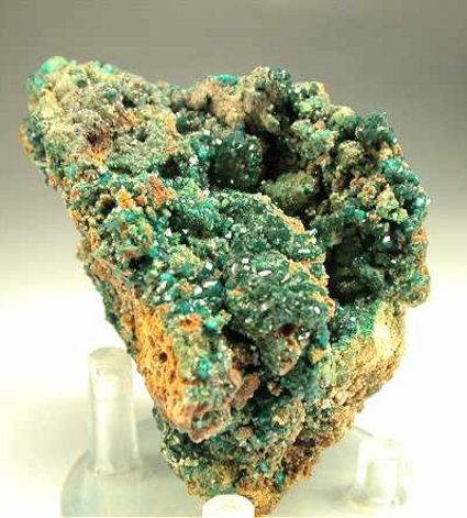 TSUMEB MINE, TSUMEB, NAMIBIA, AFRICA - Deep green dioptase crystals to 3 mm. I think there are more than a hundred crystals here ! Very rich specimen ! Overall size is 6x4x3.3 cm