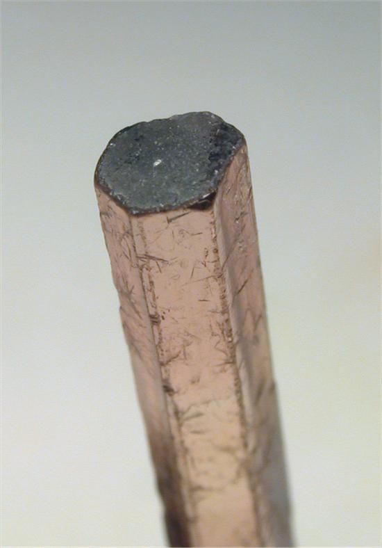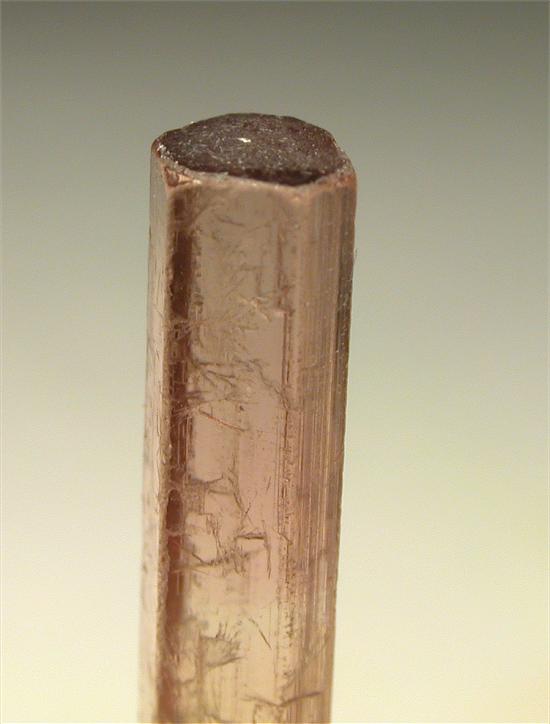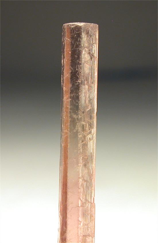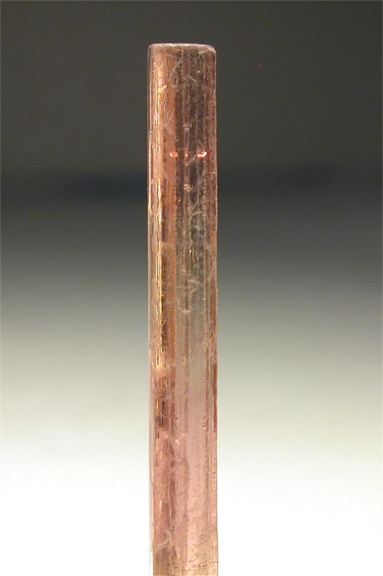 CRUZEIRO MINE, MINAS GERAIS, BRAZIL - Greatly terminated red elbaite of 3.4x0.3x0.3 cm in size. Great colors: red and light green at the base