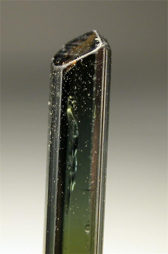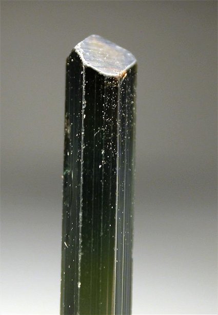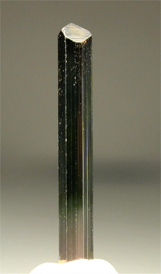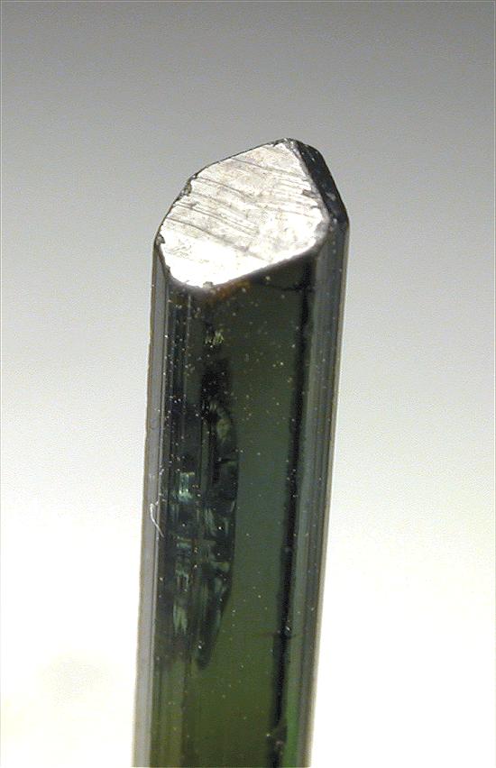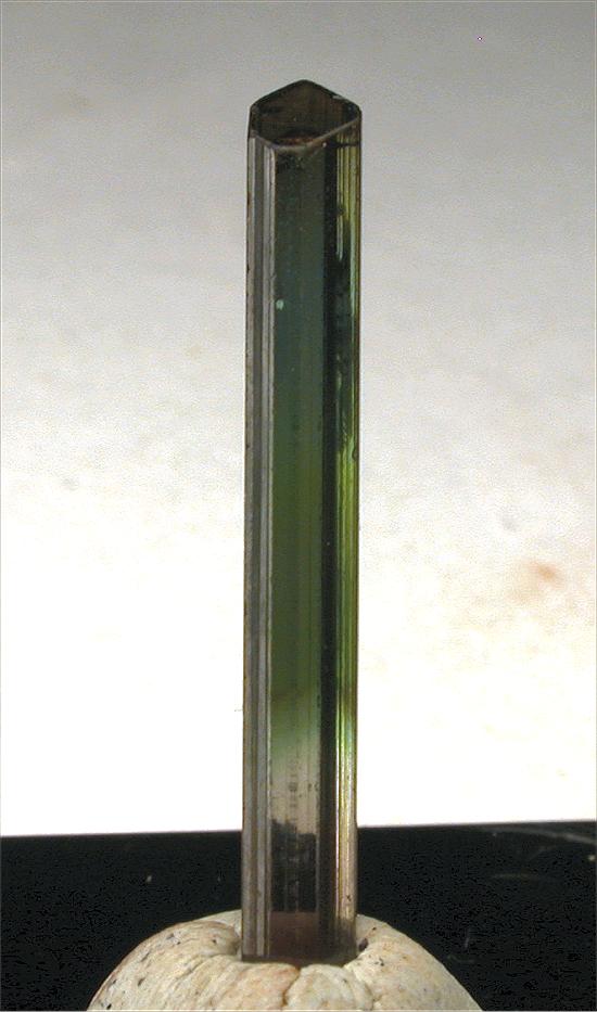 CRUZEIRO MINE, MINAS GERAIS, BRAZIL - Greatly terminated green elbaite of 2.5x0.3x0.3 cm in size. Great colors: pink-light green-green.