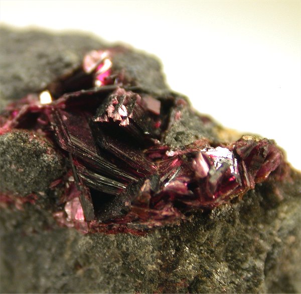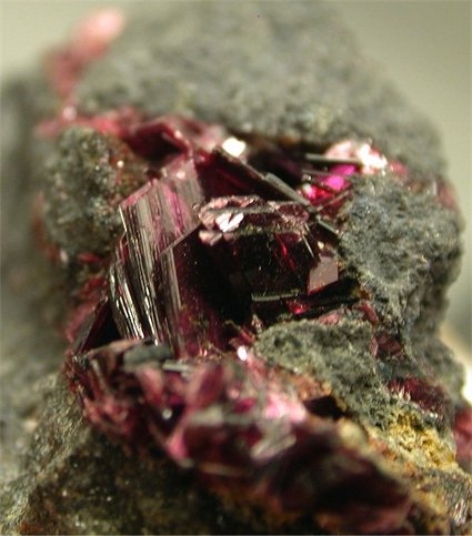 Agoudal, Bou Azzer, Souss-Massa-Draâ Region, Morocco - Nice cluster of erythryte crystals are nested in an open cavity. The color is classic ed/violet. Several crystals up to 0.7 cm, biterminated ! Overall size is 4x2.6x2.6 cm