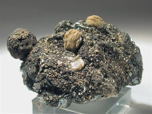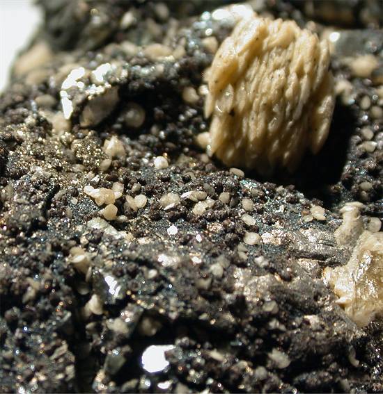 Panasqueira Mine, Beira Baixa, Portugal - The whole specimn is composed by crystalline ferberite ! The ferberites are up to 1-1.5 cm and there are several cluster of siderite alla around and some millimetric apatite. Overall size is 4.5x4.5x2.5 cm