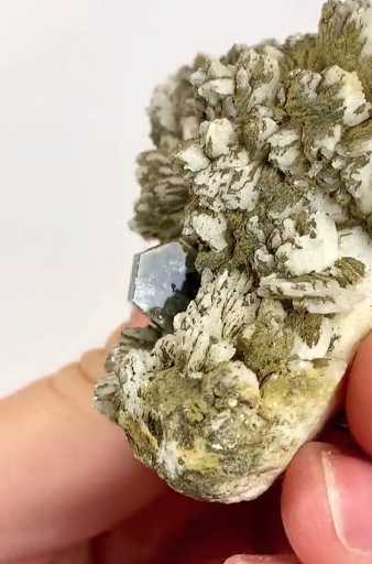 Sapo mine, Ferruginha, Minas Gerais, Brazil - Tabular mostly gemmy lustrous crystal of fluorapatite 0.9 cm across on an albite crystal matrix. In very good condition. Size: 5.5 x 4.5 x 4.0 cm