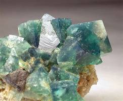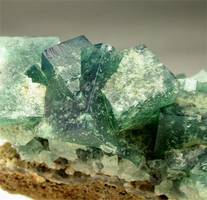 Rogerley mine, Frosterley, Durham Co., England - Very nice and esthetic fluorite specimen ! The rock hosts a number of cubic fluorites showing the classic green color under artificial light that becomes blue under the sunlight ! The fluorite crystals are up to 1.5 cm on the edge and most of them are 1 cm on the edge ! I count close to more to 2 dozen crystals ! Among them there is a dark black galena crystals 1 cm in size ! An old timer since this specimen has been aquired in the 2000 ! it comes with the orihinal label from the mine. Overall size is 5.5x5.5x4.5 cm