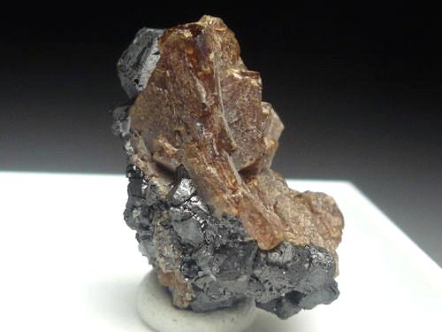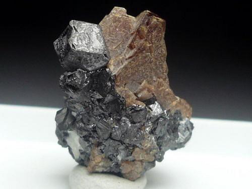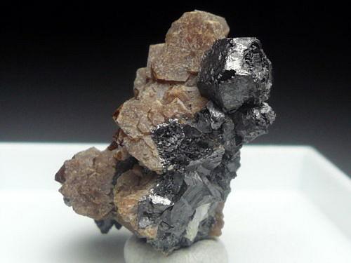 Huanggang Mine, Chifeng, Inner Mongolia, China - Nice cluster of genthelvite crystals on magnetite ! There are almost a dozen crystals of genthelvite up to the size of 0.5 cm on the edge ! Very nice specimen. Overall size is 1.9 x 1.4 x 1.2 cm