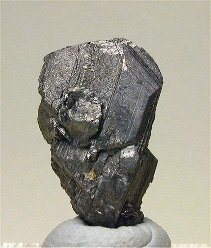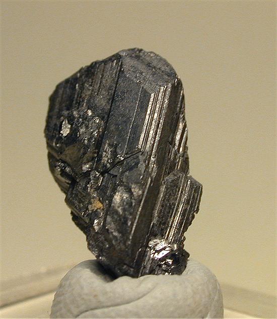 Pollone mine, Valdicastello Carducci, Pietrasanta, Apuan Alps, Lucca Province, Tuscany, Italy - This is a VERY rare, lead sufosalt with moderately large crystals. The color is battleship gray, with a satiny luster. This species is not often seen in dealers stocks or even in museums ! This crystal is 1.4x0.9x0.5 cm and shows nice termination and luster. Super rare specimen.