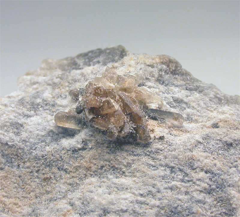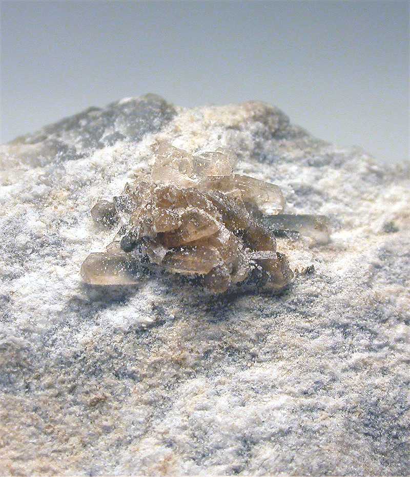 Bras D'Or lake, Cape Breton Island, Nova Scotia, Canada - Cluster of crystals of this unusual mineral show up on anydrite matrix. Crystals are up to 3 mm and form a cluster of 0.6 cm in width. Overall size is 2.5x1.5x0.7 cm