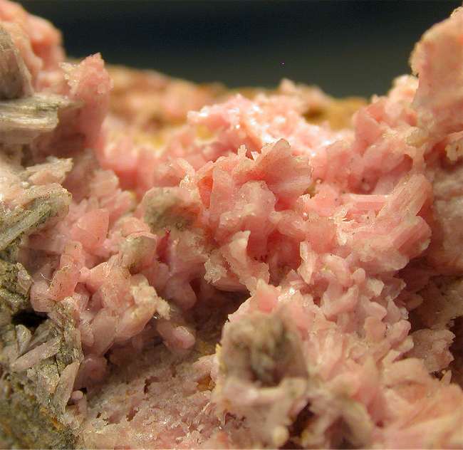 Hale Creek Mine, Trinity County, California - A nice large ammount of pink inesite crystals cover the surface of this open cavity. The crystals are up to 0.4 cm. Nice 5.5x3.5x2.5 cmin size