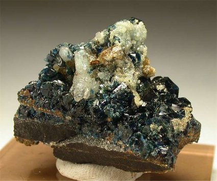 Rapid Creek, Yukon, Canada - Many deep blue Lazulite crystals show on this rock ! Lazulites are up to 0.5-0.7 cm. This locality is very remote and hard to collect from now. This specimen dates back to the 1970s. Overall size is 3.5x3x2.5 cm. Ex Pebble Peddler collection