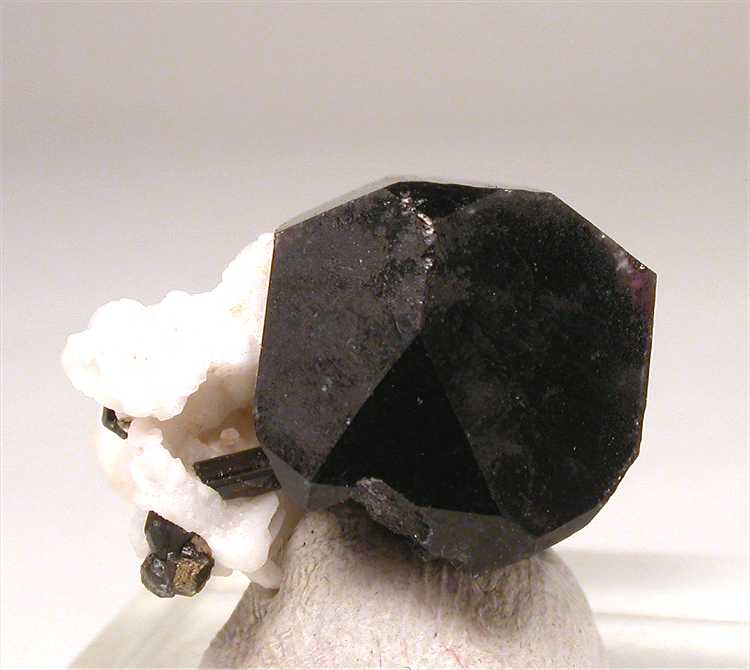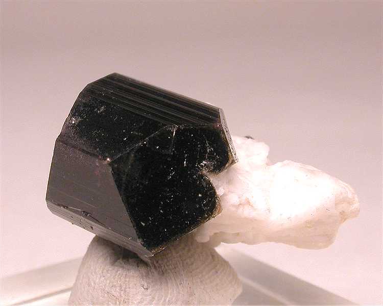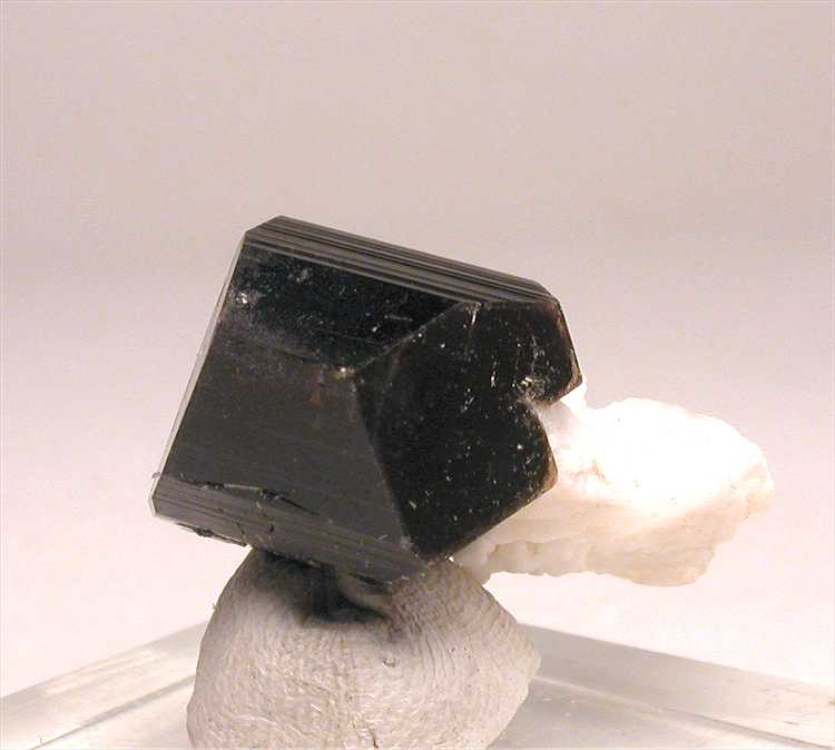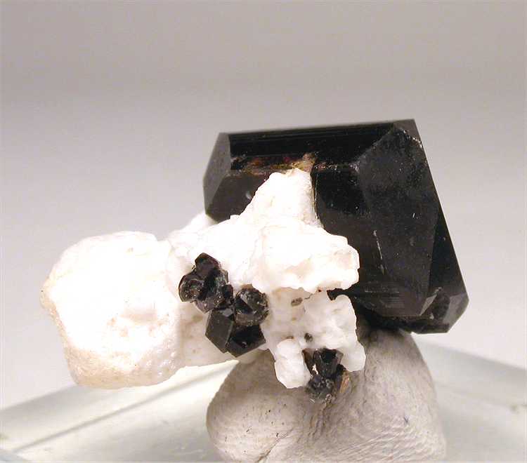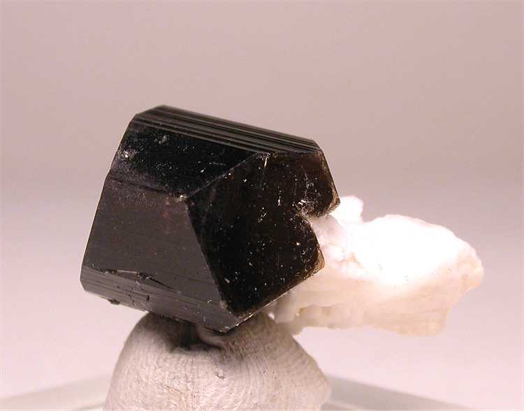 Ambararata, Madagascar - Biterminated liddicoatite of 1.5x1.2x1.2 cm in size. The crystal sits on a small feldspar matrix, vey white in color and this gives a great contrast for the dark brown color of the liddicoatite ! Overall size is 2x2x1.5 cm