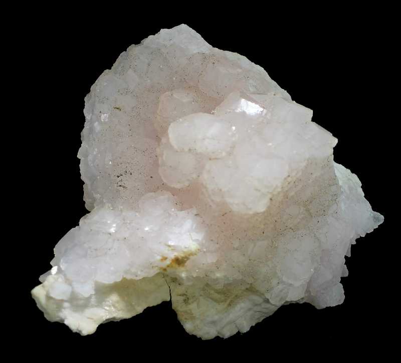 Nikolayevskiy Mine, Dalnegorsk, Primorskiy Kray, Russian Federation - A cluster of pearly rounded columnar manganoan calcite with dodecahedral form, slightly speckled with chlorite/pocket debris. Very nice crystals up to 1.5 cm in size. Overall size is 9.4 × 7.2 × 4.5 cm.