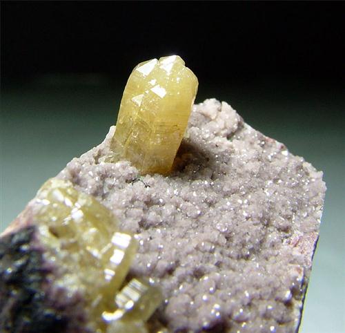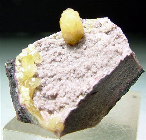 Tsumeb Mine, Otavi Highlands, Namibia - Very nice terminated large mimetite crystal of 0.8x0.4 cm stands on this specimen with other tiny mimetites. No damage. Very nice of 3x2.3x2.3 cm