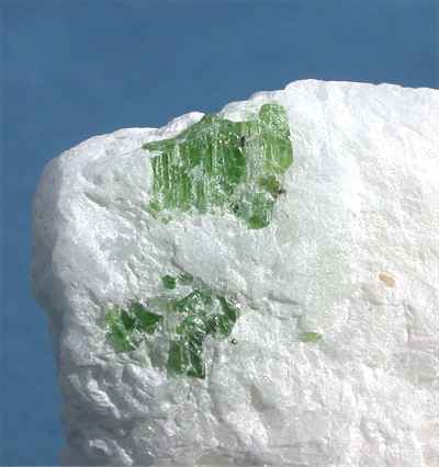 PAKISTAN - Crystalline pargasite of 0.6 cm in size shows up on this specimen. Nice and bright green color of these crystals on the 4x5x2 cm matrix