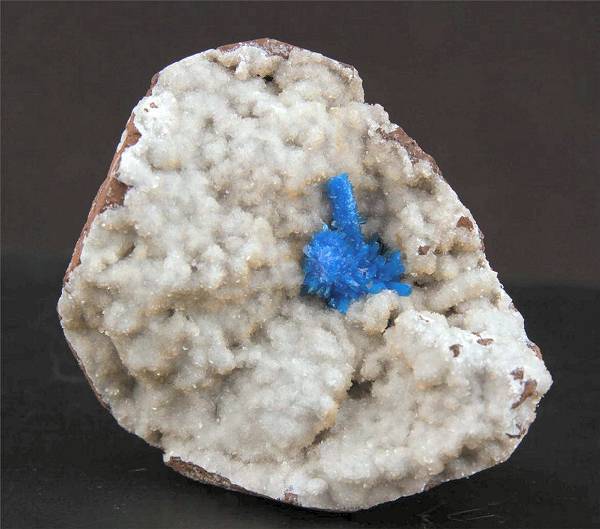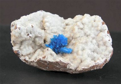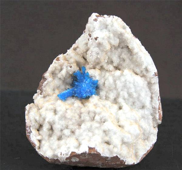 Pune, Maharashtra, India - Bright blue pentagonite cluster of 1.5x1.2 cm wide ! Lot of crystals up to 0.4 cm. The matrix of the specimen is completely covered by tiny heulandite crystals. Overall size is 5x4.5x3 cm