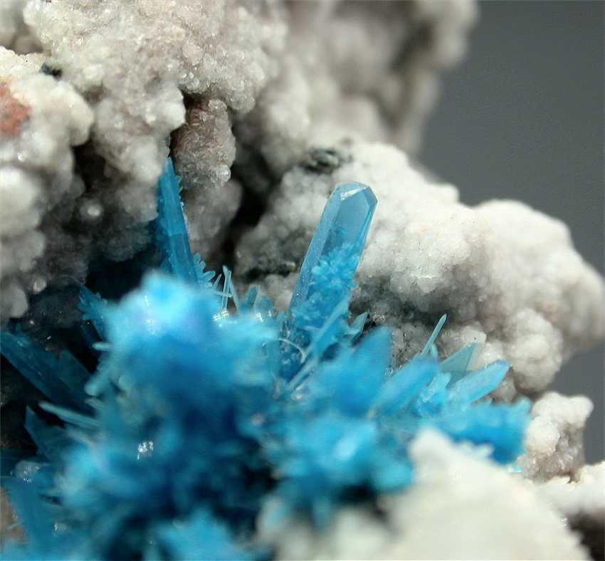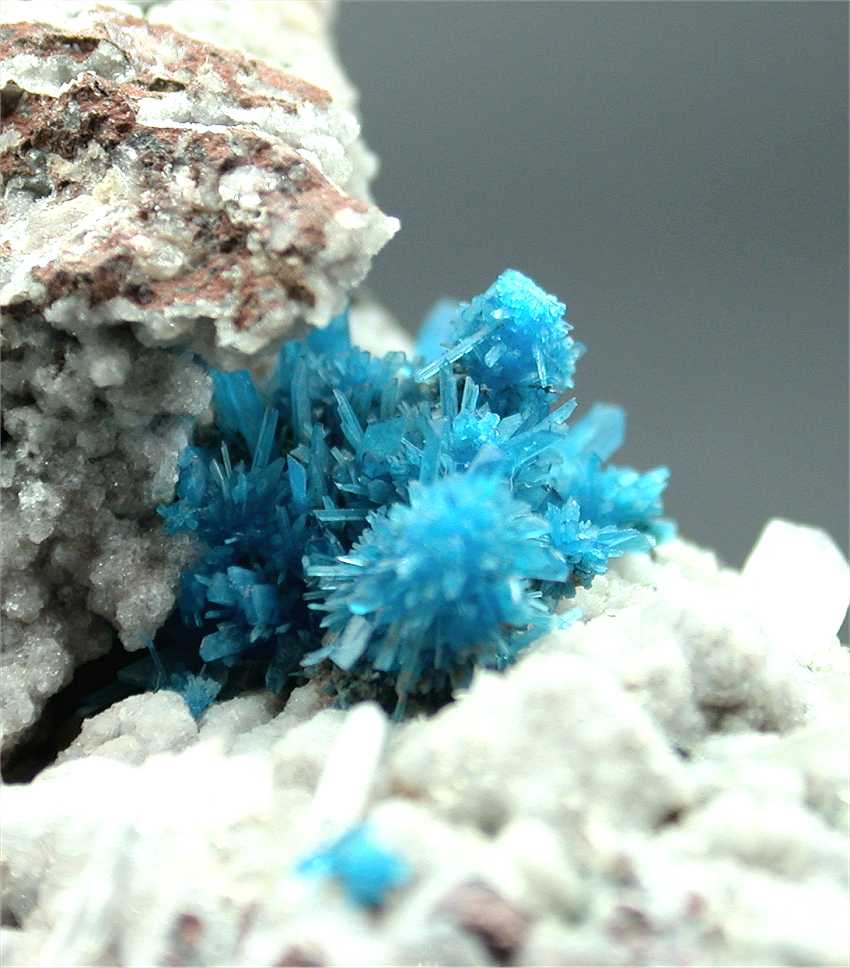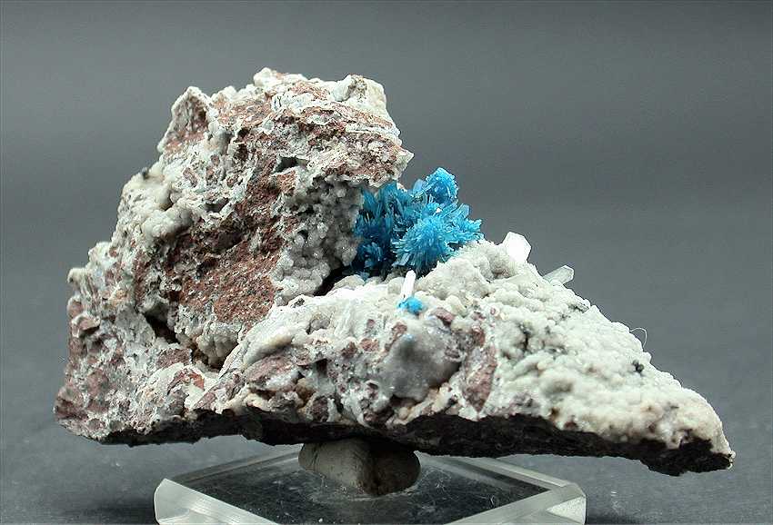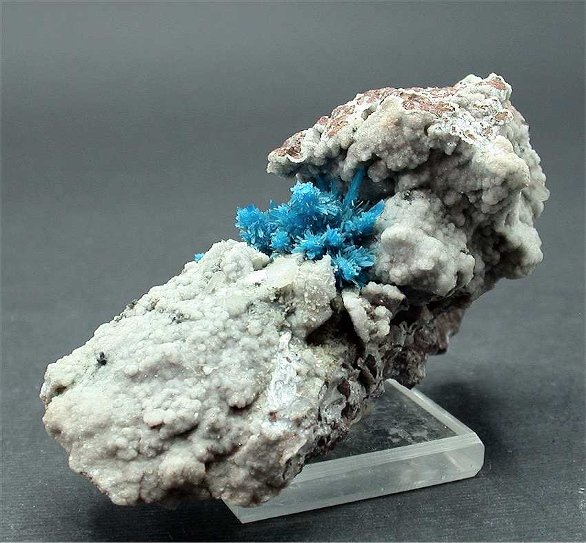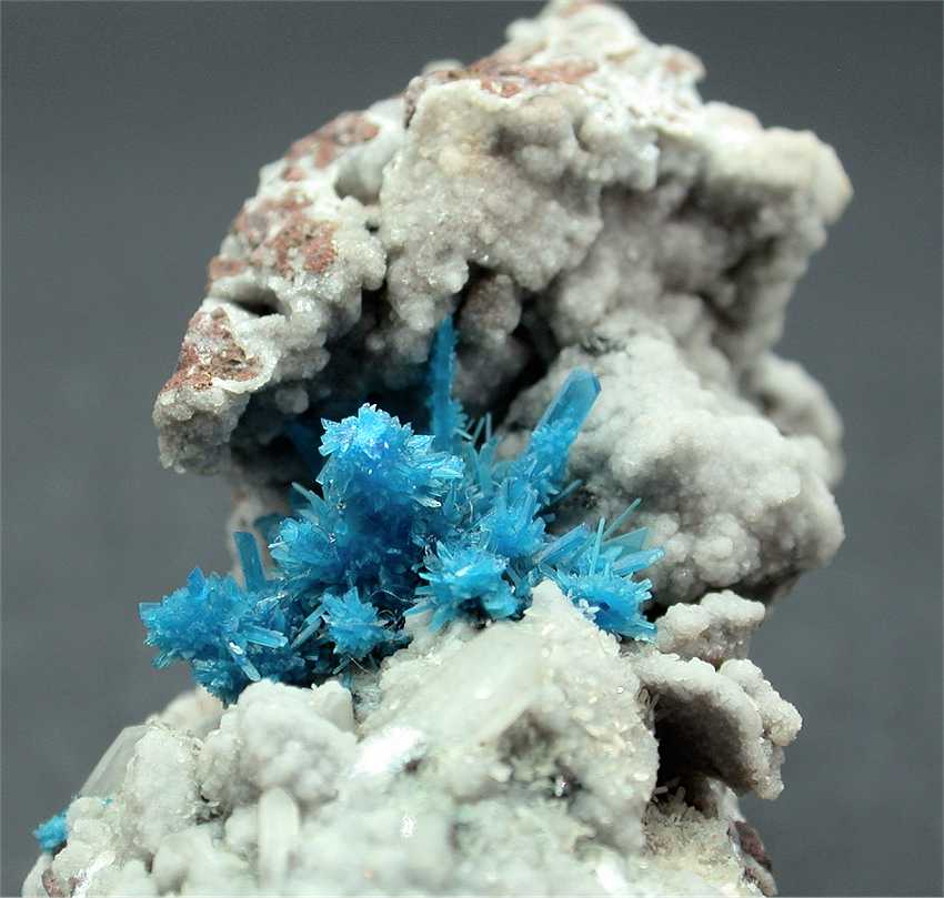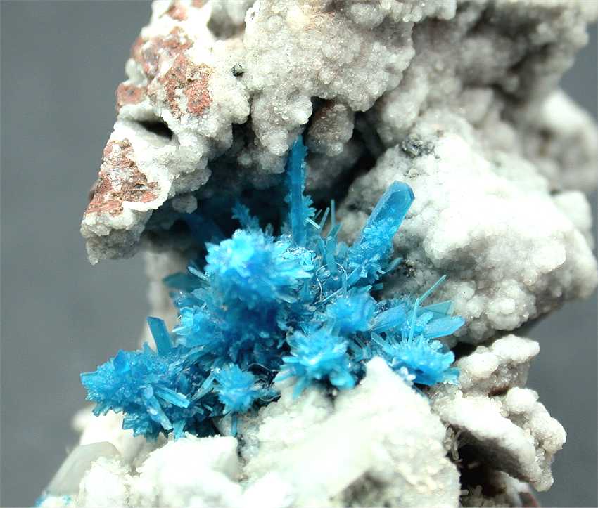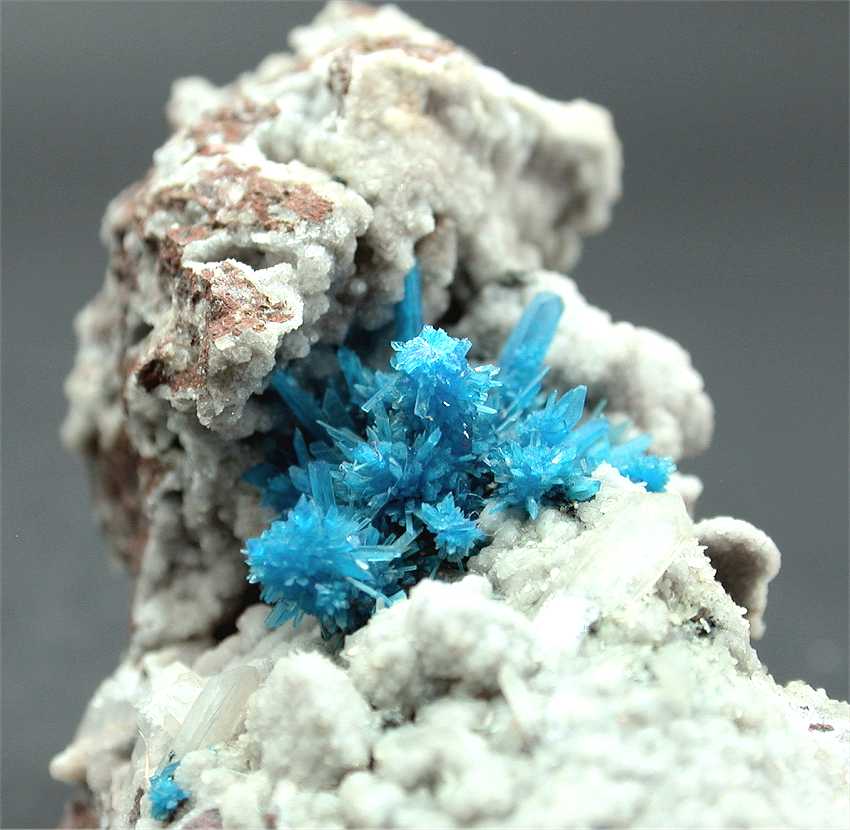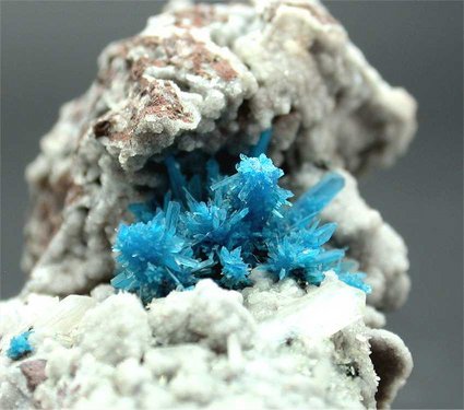 Pune, Maharashtra, India - Spectacular pentagonite cluster of crystals ! The cluster is 1.8x1.1 cm wide and shows greatly ! The color is the classic blue, the pentagonites are up to 0.5-0.6 cm in size and are well visible in the cluster. There are small stilbite crystals all around. Overall size is 7.3x4x3 cm.