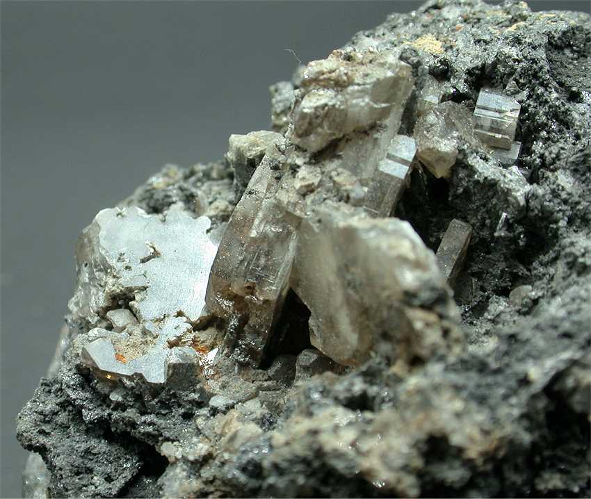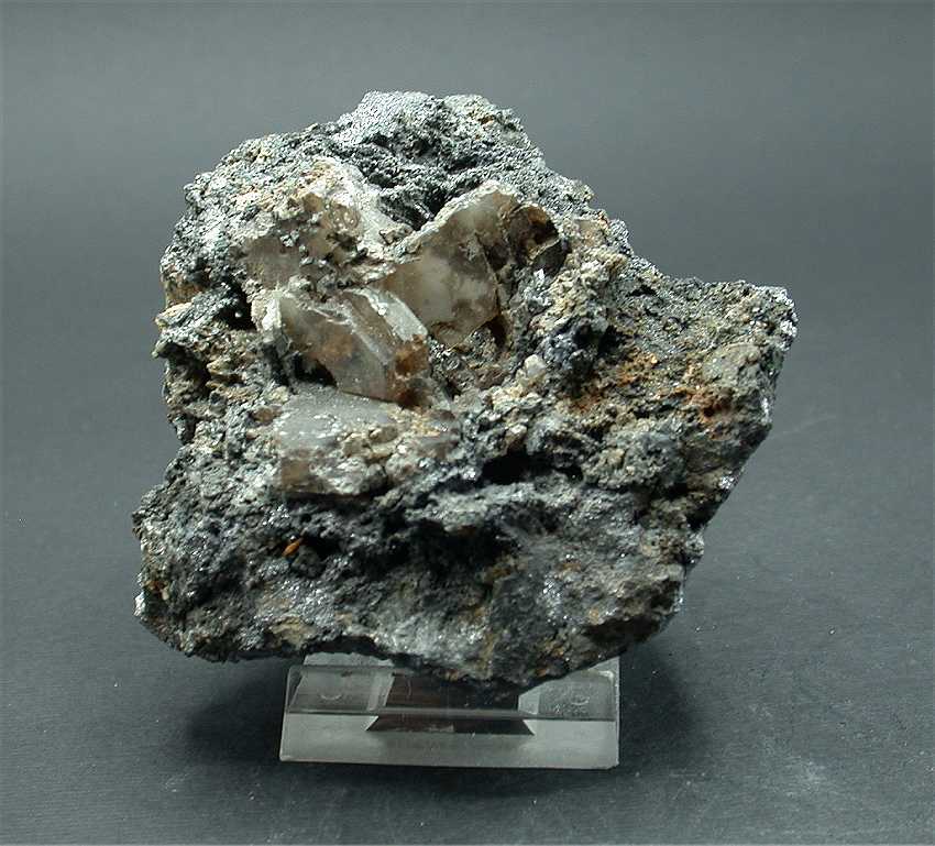 Monteponi mine, Iglesias, Carbonia-Iglesias Province, Sardinia, Italy - A classic from this mine ! The specimen of galena hosts several phosgenite crystals grouped forming a cluster ! The crystals are up to 2 cm in size ! They show the classic yellow fluorescence under UV light. Great specimen ! Overall size is 7x7x5.5 cm. Weight is 595 gr