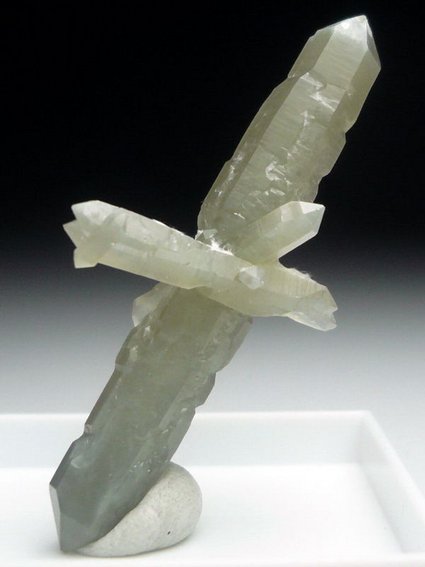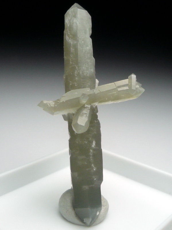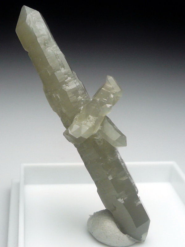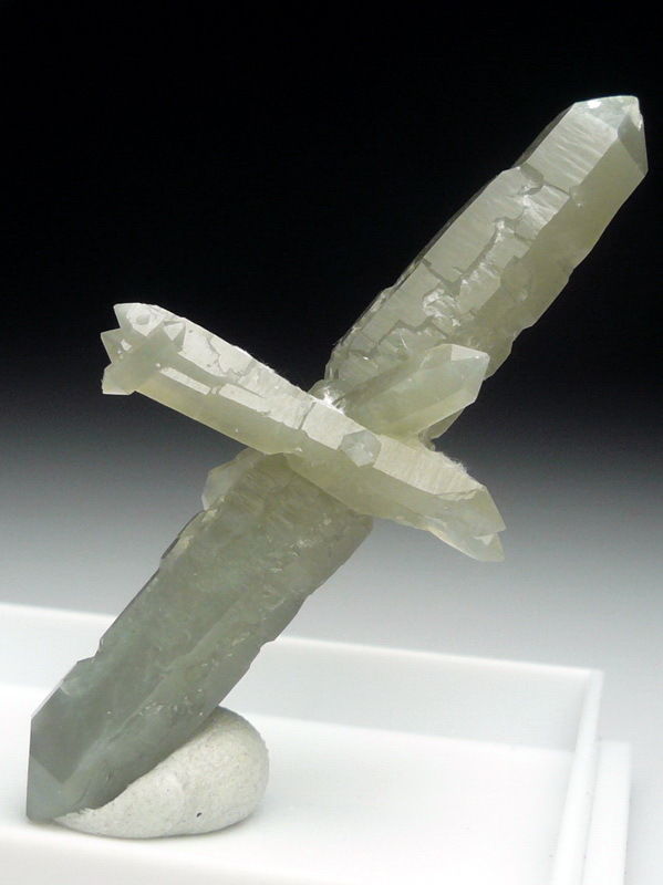 Huanggang Mine, Chifeng, Inner Mongolia, China - Biterminated prase quartzs forming a nice cluster ! The longest is 4.2 cm in size. Nice light green color.
